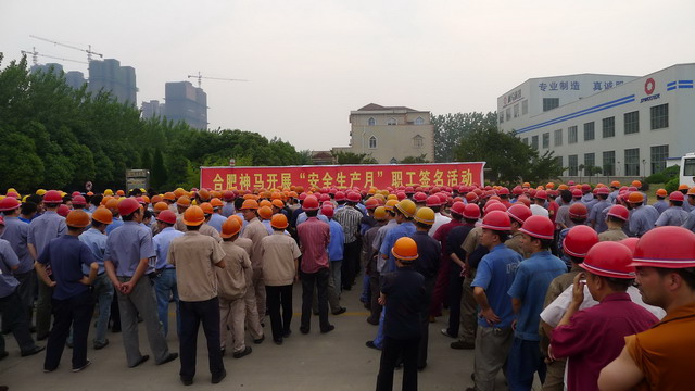 为贯彻落实经开区和集团公司有关安全生产文件精神,,,,,深入开展好第十个全国“安全生产月”活动,,,,,6月3日下午,,,,,我公司举行了2011年“安全生产月”活动启动仪式,,,,,并开展了签名活动,,,,,公司领导、各部门和各分厂员工、园区内各协作单位员工参加了本次活动。。。。。。。。