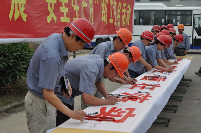 启动仪式最后,,,,,公司领导和广大员工依次在印有“安全责任,,,,,重在落实”的横幅上郑重的签下了自己的名字,,,,,表达了对企业安全生产的庄严承诺,,,,,从而正式拉开了公司“安全生产月”活动的序幕。。。。。。。。